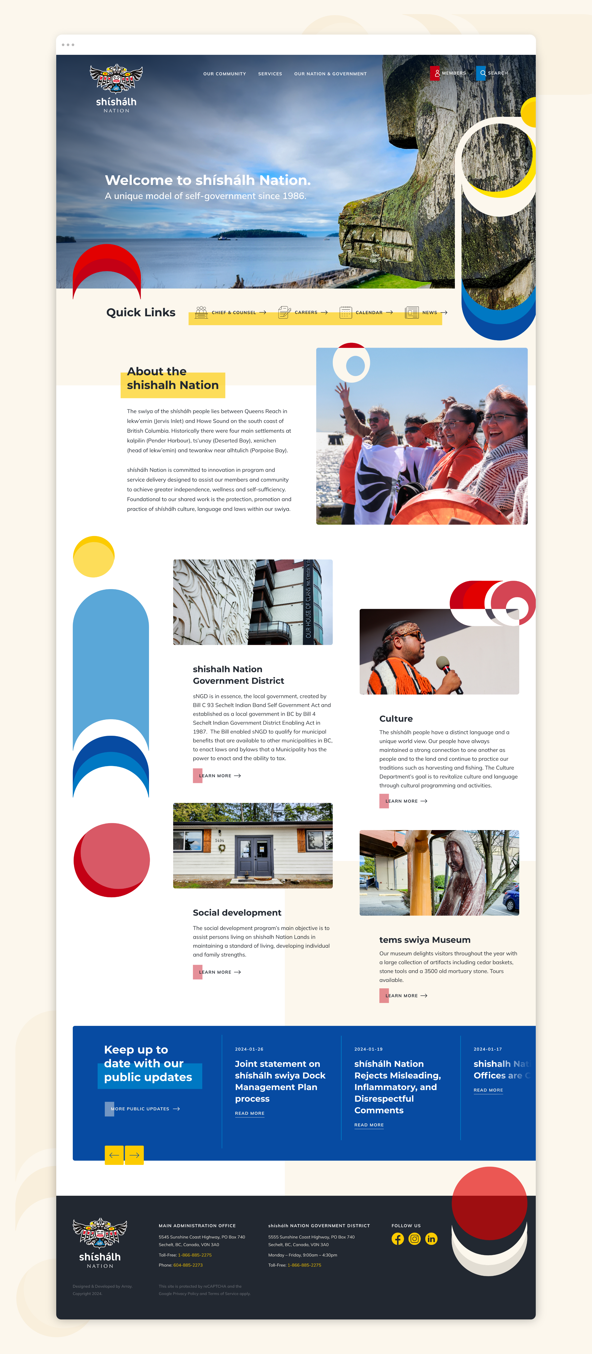 The shíshálh Nation, a self-governing Indigenous community on the Sunshine Coast, is deeply committed to strengthening connection and supporting its people. As their Nation continues to grow, so do the needs of their digital ecosystem. Originally built with external stakeholders in mind, the website needed to evolve into a platform that better supported its members by making information accessible, opportunities visible, and communication easy.